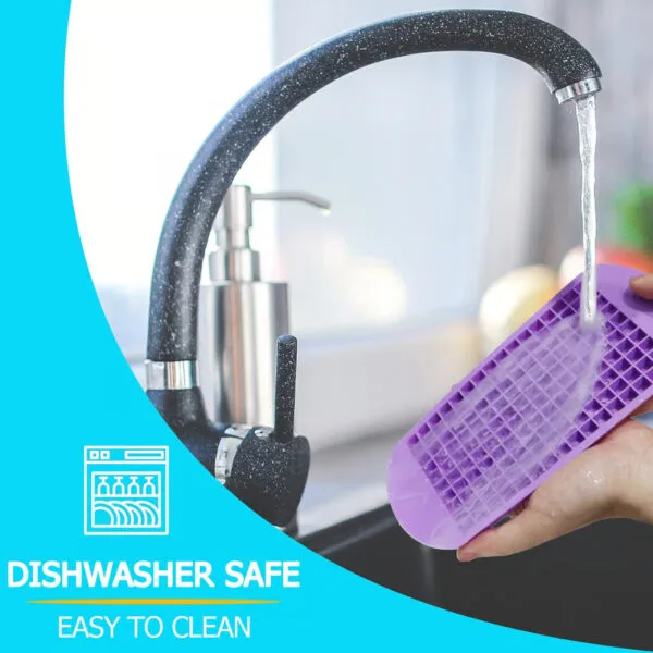 Tha an stuth sùbailte silicone a’ ceadachadh leigeil ma sgaoil deigh gu furasta. Dìreach lùb an treidhe agus cuir a-steach e gus na ciùban deigh a leigeil ma sgaoil gun oidhirp. A bharrachd air an sin, tha uachdar rèidh an silicone a ’dèanamh glanadh na ghaoith - dìreach cuir na treallaich san inneal-nigheadaireachd airson glanadh luath is èifeachdach.